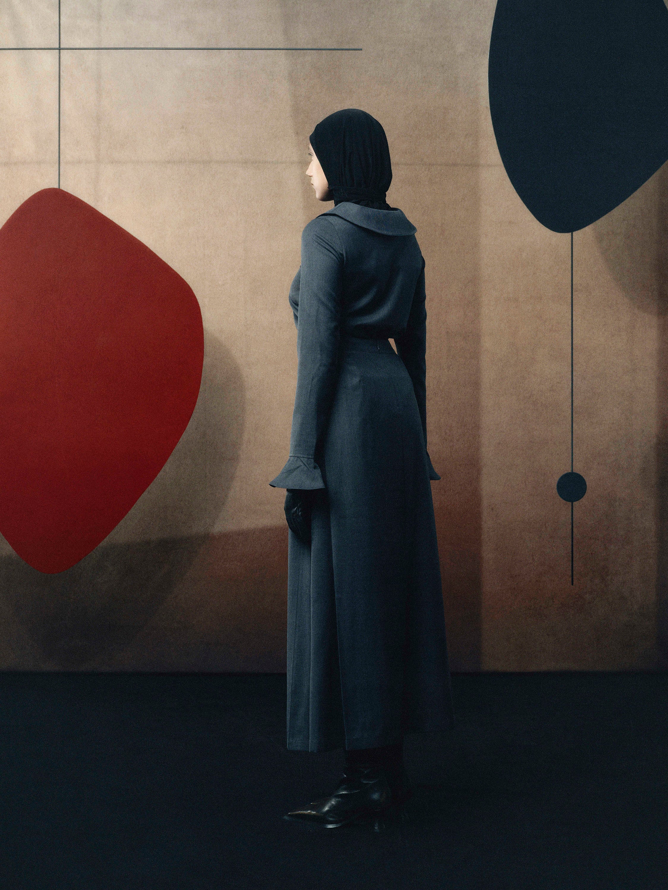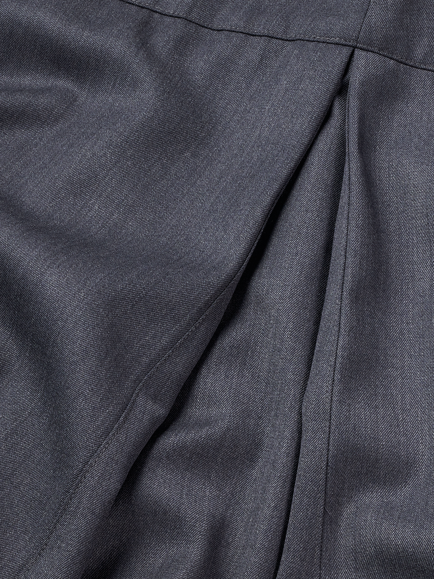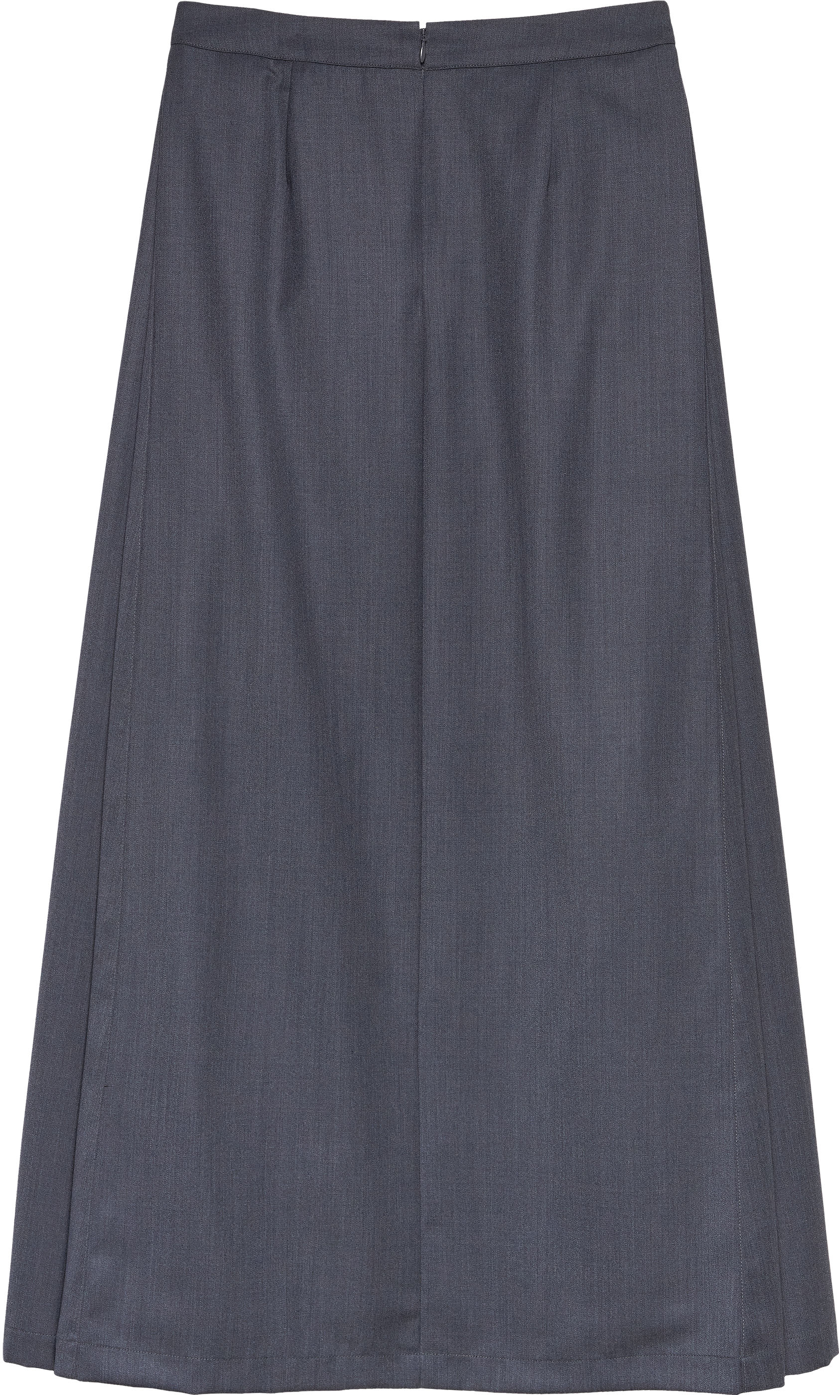Crafted from fine wool, this dark grey skirt is elevated with layered side panels that create refined volume and movement. The high-waist cut defines the silhouette, while the full-length A-line shape offers timeless elegance. Minimal yet architectural, it is a versatile piece designed to transition seamlessly from day to evening, embodying AYAH Studios’ commitment to understated luxury.