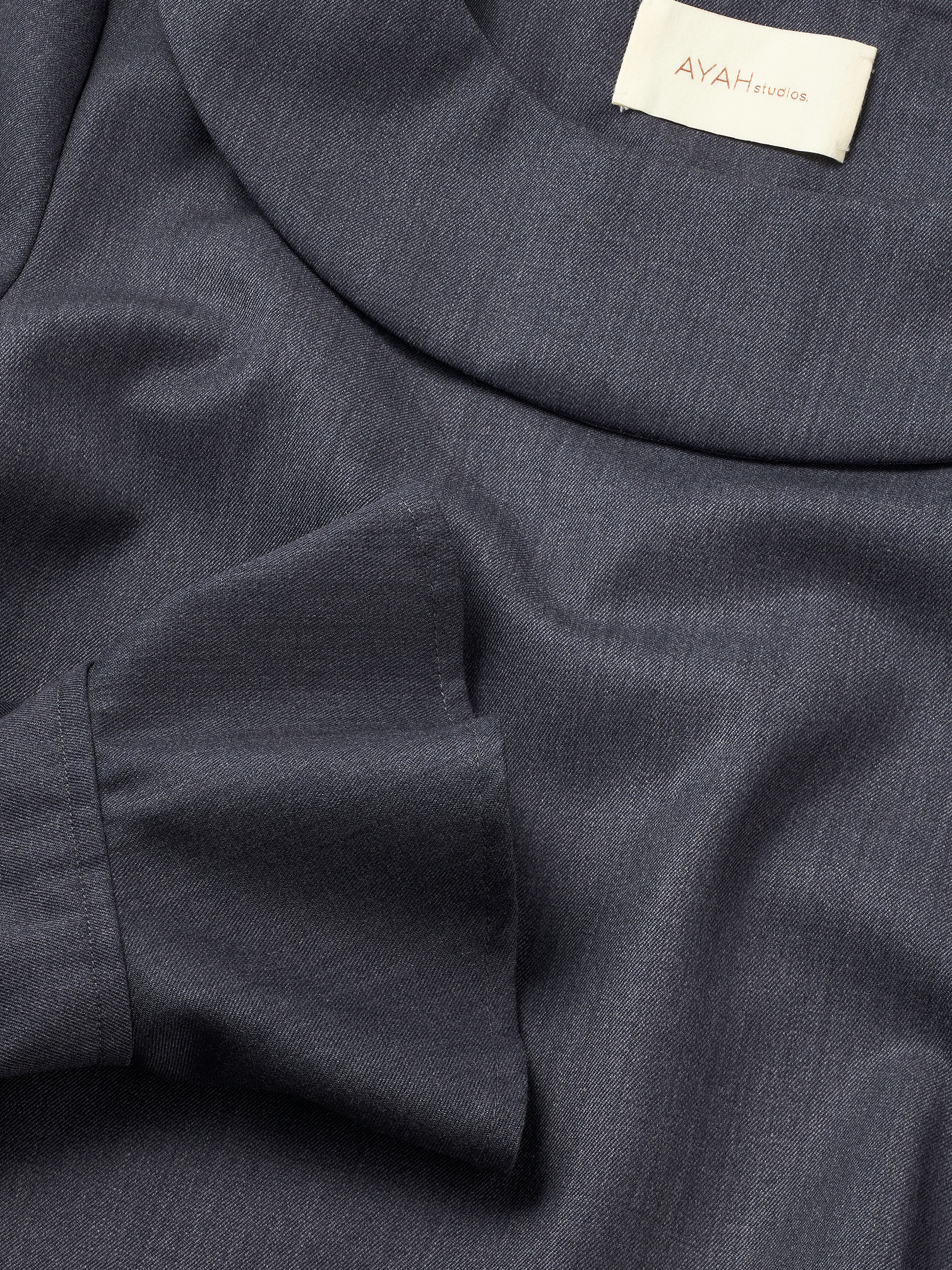 Crafted from 100% wool, it offers both structure and comfort, with a natural drape that complements its tailored cut. Designed for versatility, this piece can be layered seamlessly or worn on its own, carrying the essence of modern modest luxury.